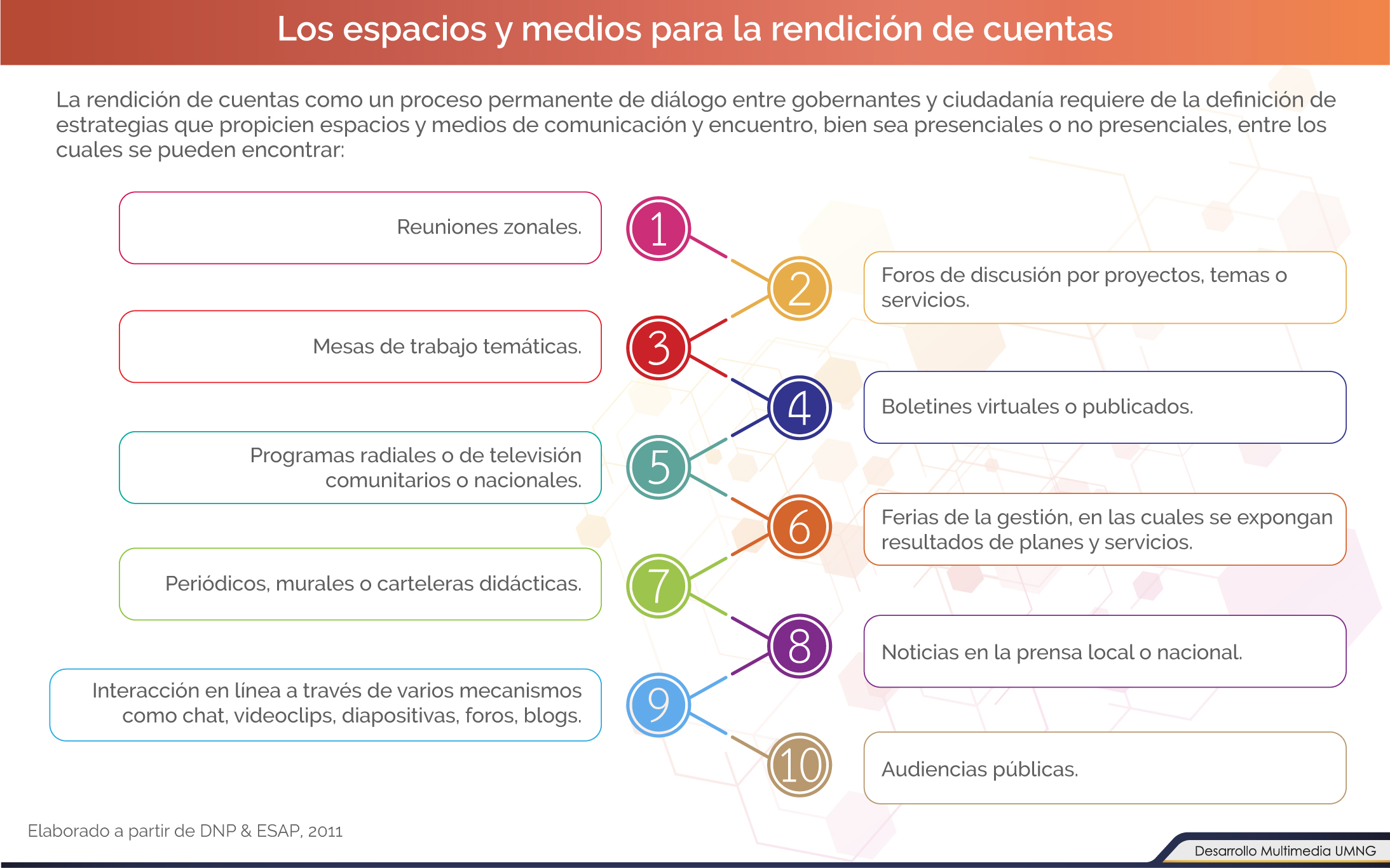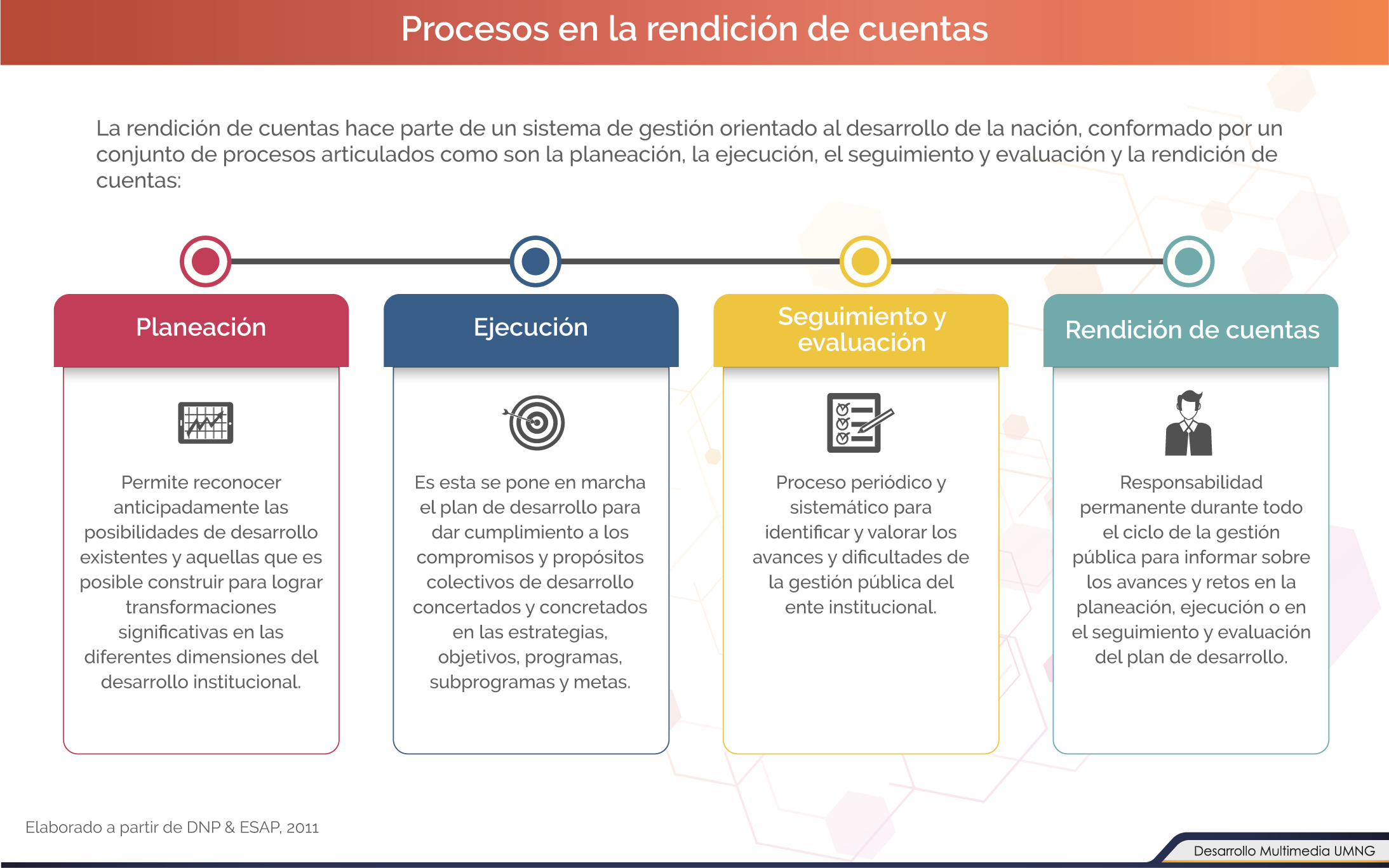 - DNP & ESAP. (2011). Lineamientos para la Rendición de Cuentas por las Administraciones Territoriales. Bogotá: Imprenta Nacional.