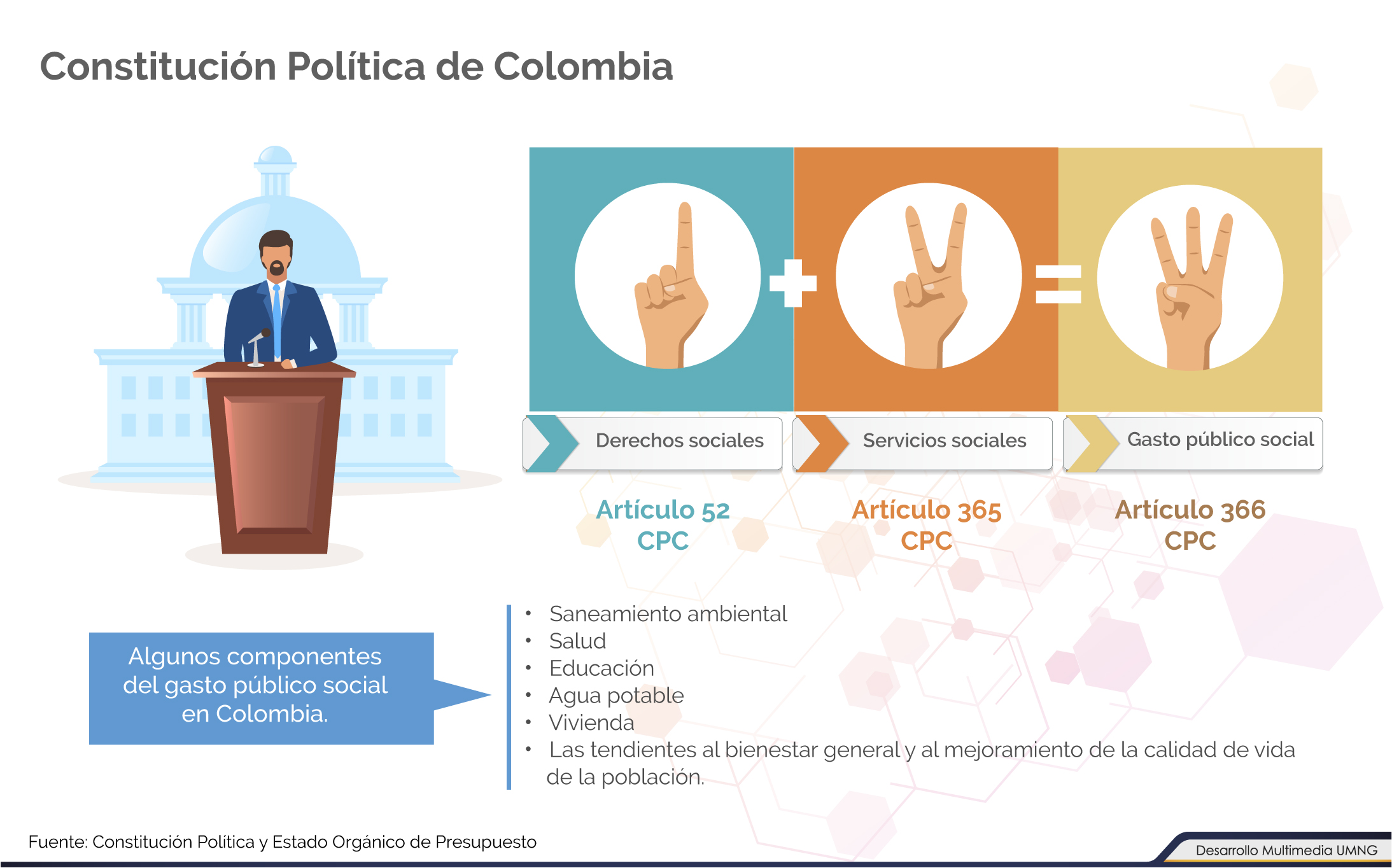 El Artículo 366 de la Constitución Política de 1991, puntualiza que será objetivo fundamental de la actividad del Estado “…la solución de las necesidades insatisfechas de salud, de educación, de saneamiento ambiental y de agua potable. Para tales efectos, en los planes y presupuestos de la nación y de las entidades territoriales, el gasto público social tendrá prioridad sobre cualquiera otra asignación”.