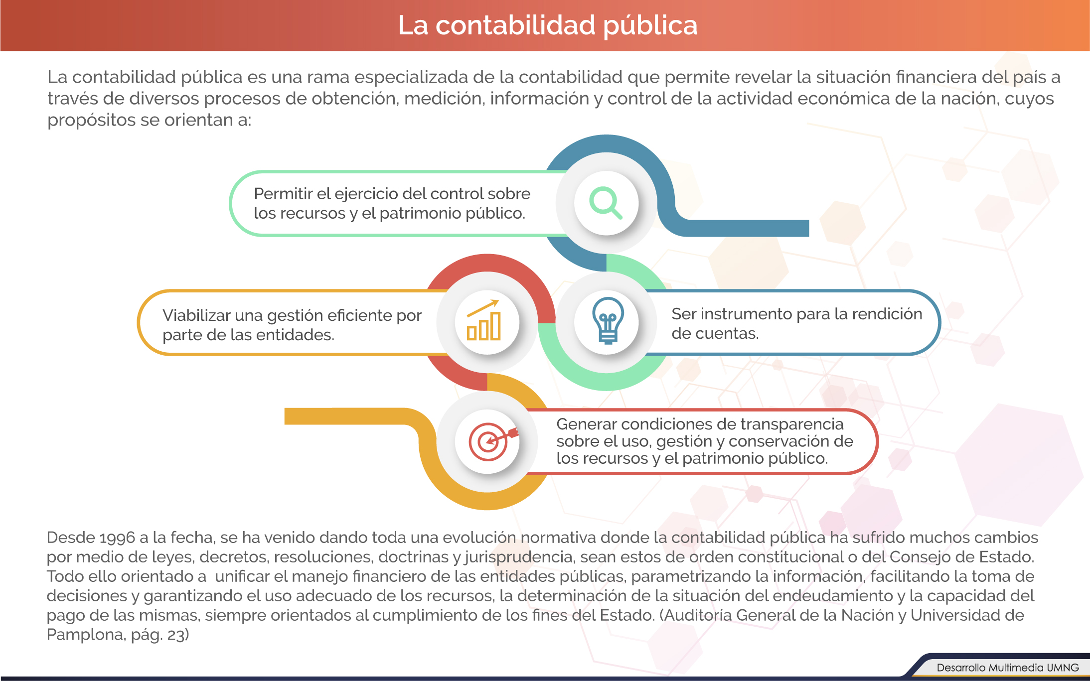 El Estado para el funcionamiento y cumplimiento de los fines constitucionalmente establecidos, tiene en su estructura organizaciones o entidades públicas que van desde las encargadas de recaudar, administrar y ejecutar los tributos del Estado hasta las empresas industriales y comerciales, tanto en el orden nacional como territorial, todas ellas deben contar con un sistema contable que permita observar su situación financiera y el resultado de sus operaciones, constituyéndose por tanto en factor clave para la evaluación de la gestión y el control del uso de los recursos públicos.