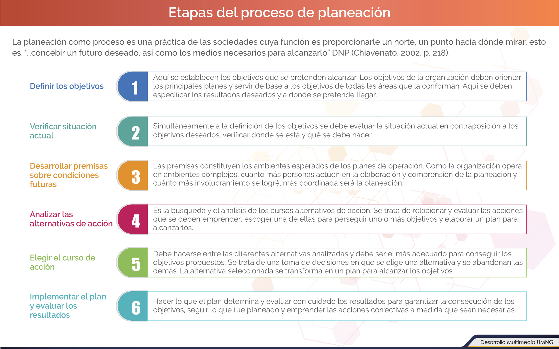 La planeación sea pública o privada constituye un proceso por medio del cual se establece de manera precisa el rumbo o dirección hacia dónde se deben orientar las acciones de un grupo de personas, instituciones o dependencias, con el fin de brindar soluciones a los problemas identificados, determinando las actividades y recursos necesarios. Este ejercicio comúnmente se ve como algo temporal, rutinario y abstracto.