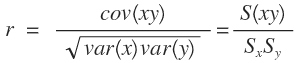La ecuación evidencia que el coeficiente de correlación se puede expresar en términos de la covarianza entre dos variables y las desviaciones estándar de cada una de ellas.