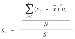 - se calcula a partir de la media; la desviación estándar y las diferencias de los valores de la variable, respecto a la media elevada al cubo. Una medida sencilla de asimetría se conoce como el coeficiente de asimetría de Pearson.