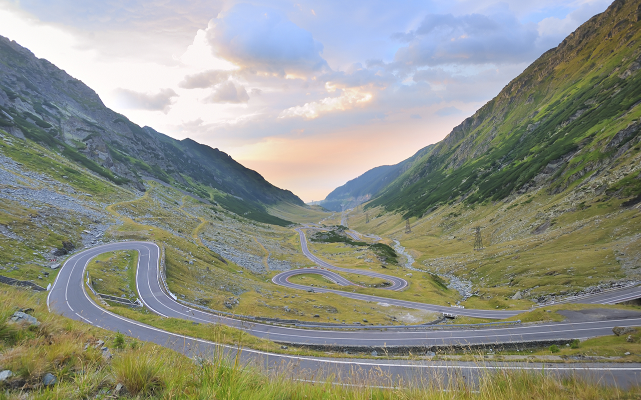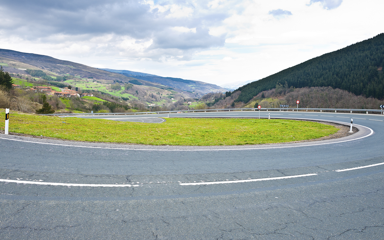 - Curva espiralizada: se incorporan espirales cuya longitud y radio mínimo responden a la velocidad de diseño, cumpliendo los parámetros y criterios de espiralización establecidos.