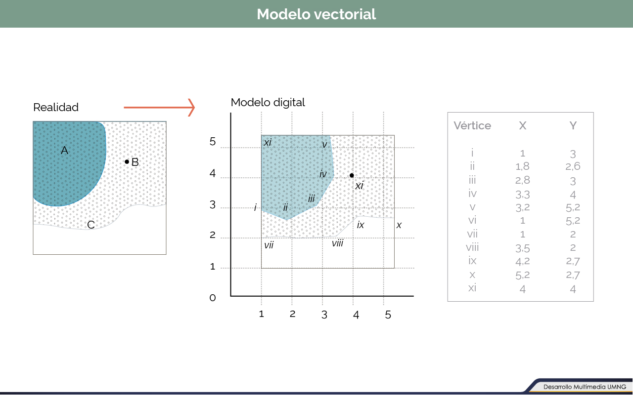 Uno de los principales modelos de representación de la información geográfica es el modelo vectorial. En este la recolección de la información se realiza mediante la utilización de entidades geométricas primarias, las cuales tienen propiedades definidas y representan los elementos existentes en un área a representar.