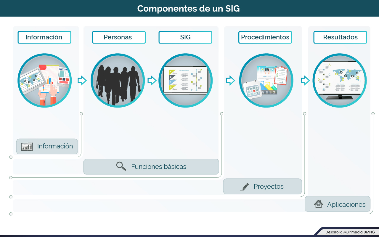 Todos los componentes anteriormente mencionados se deben concebir y planear para proveer una estructura de sustento para el SIG que se está diseñando, y así crear las aplicaciones necesarias para la compresión de los resultados y su correcta interpretación por parte del usuario final.