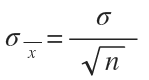 \large \sigma _{\bar{x}}=\frac{\sigma }{\sqrt{n}}= Desviación estándar de las medias muestrales.