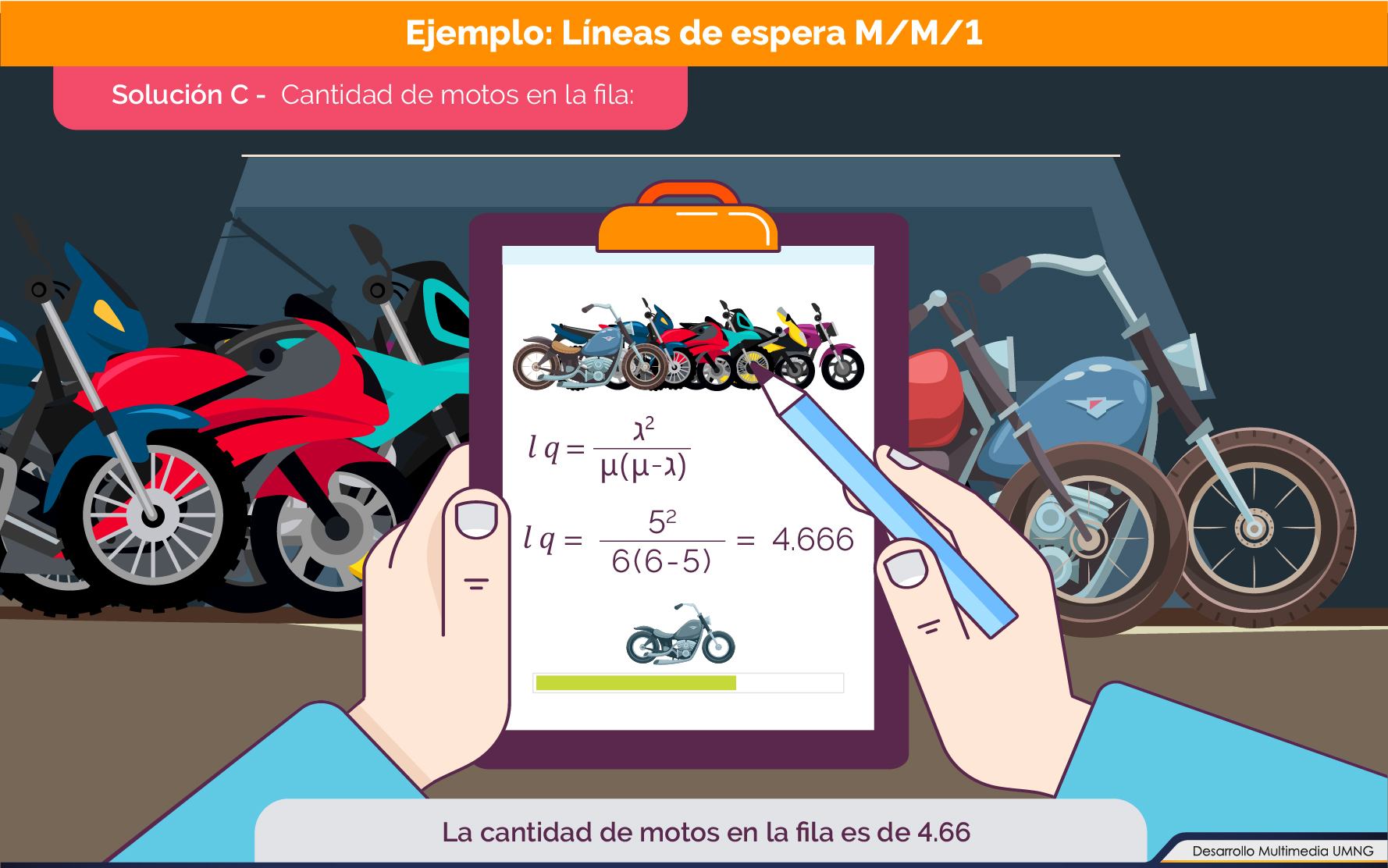 También, se establecieron los conceptos fundamentales de la teoría de colas, así como las características de las líneas de espera, se profundizó en la notación utilizada basándonos en las notaciones de Kendall. Se realizó una compilación de las medidas de desempeño más comunes y utilizadas con mayor frecuencia en el estado del arte para, posteriormente, resolver problemas planteados utilizando la notación y las medidas de desempeño.
