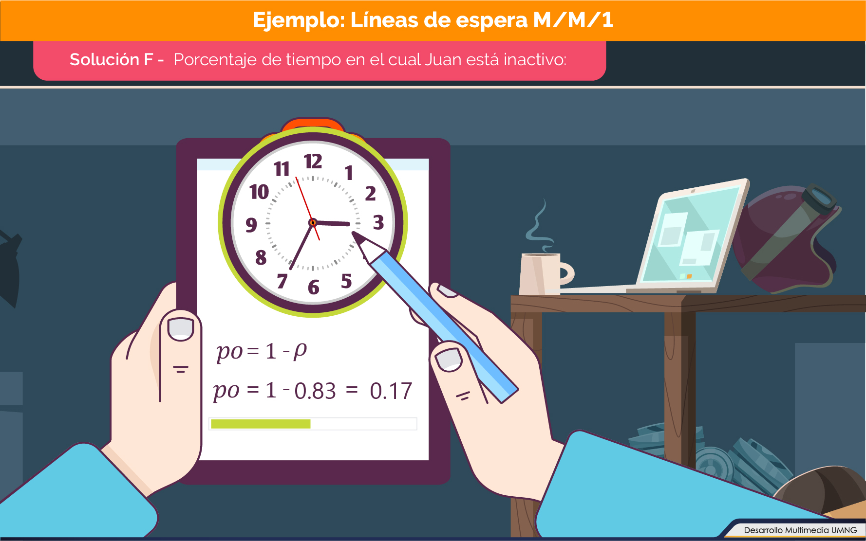 Le invitamos después de realizar el ejemplo de los modelos de líneas de espera M/M/S, ha desarrollar un ejercicio donde podrá aplicar lo aprendido en esta temática. |