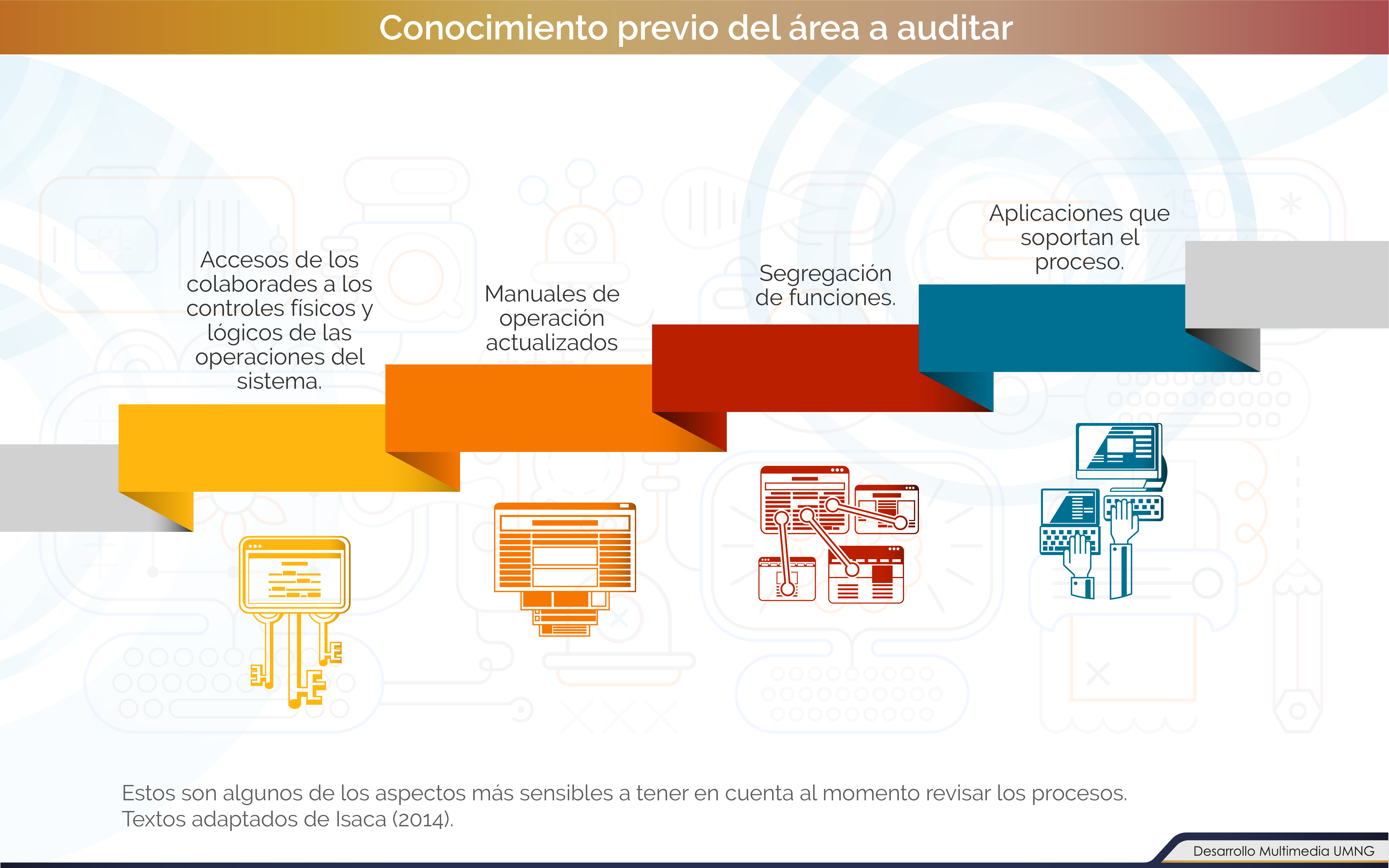 La estructura de este apartado se basa en el manual de preparación al examen Certified Information Systems Auditor (CISA, 2015), cuyo texto es el principal material de estudio de un auditor de SI debido a que en él se encuentra toda la información actualizada sobre la auditoría informática.