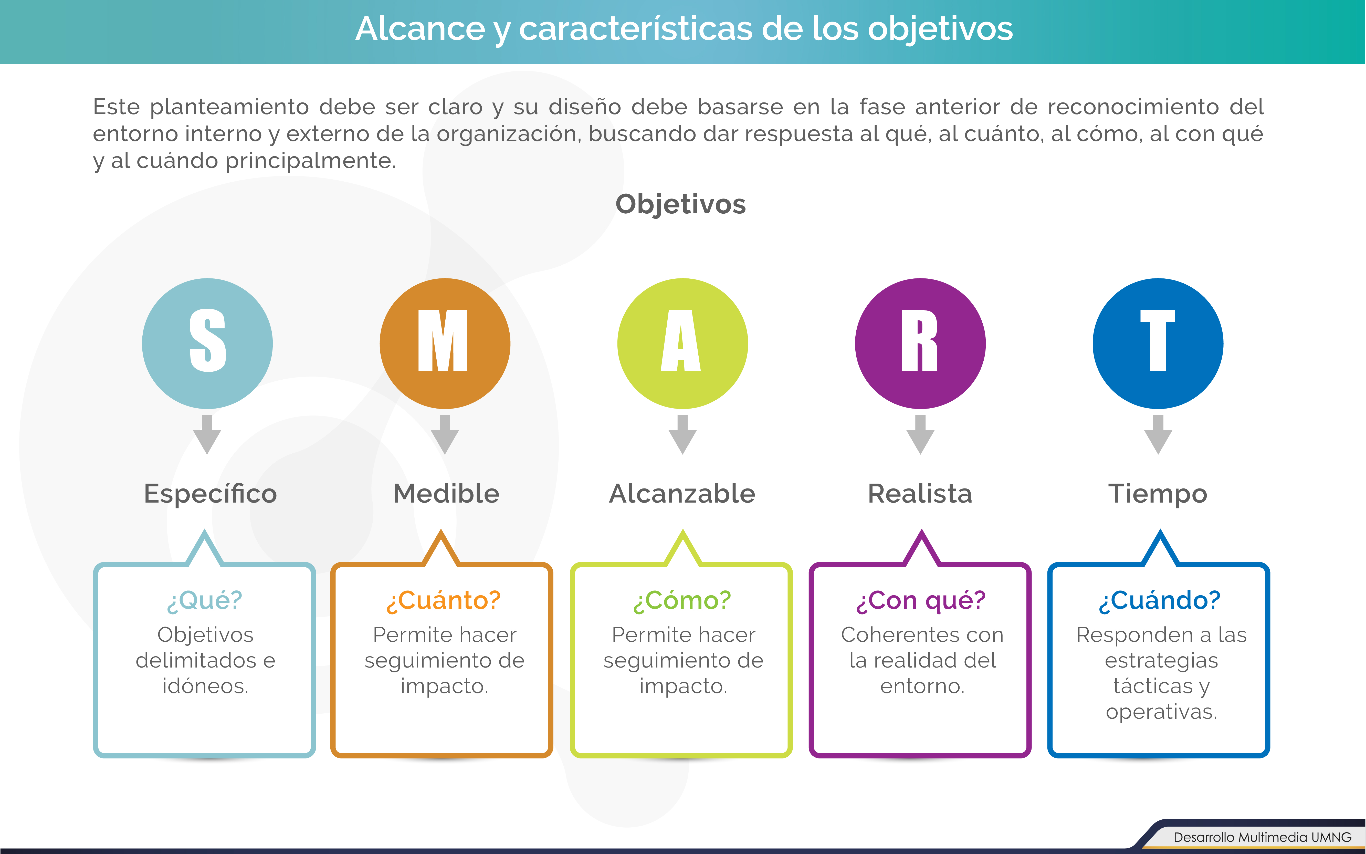 El punto de partida se basa en un análisis desde la perspectiva global de la compañía, que permita posteriormente establecer los objetivos en función del análisis DAFO realizado. Estos objetivos deben ser perdurables en el lapso de un año principalmente.