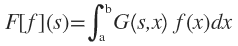 Donde G (s,x) es una función de control (o peso) llamada usualmente núcleo, a y b pertenecen al conjunto ℝ U {±∞} y F[f](s) es una función en variable s que se denomina la transformada de f.