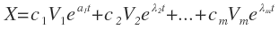 Ahora bien, de manera análoga a lo desarrollado para las ecuaciones diferenciales ordinarias, dado el sistema X´=F(t)X+ G(t) llamaremos a X´=F(t)X la ecuación homogénea asociada y comenzaremos por estudiar su solución, pues como antes, conociendo la solución del sistema homogéneo y Xc una solución particular del sistema Xp, la solución total del sistema estará dada por: