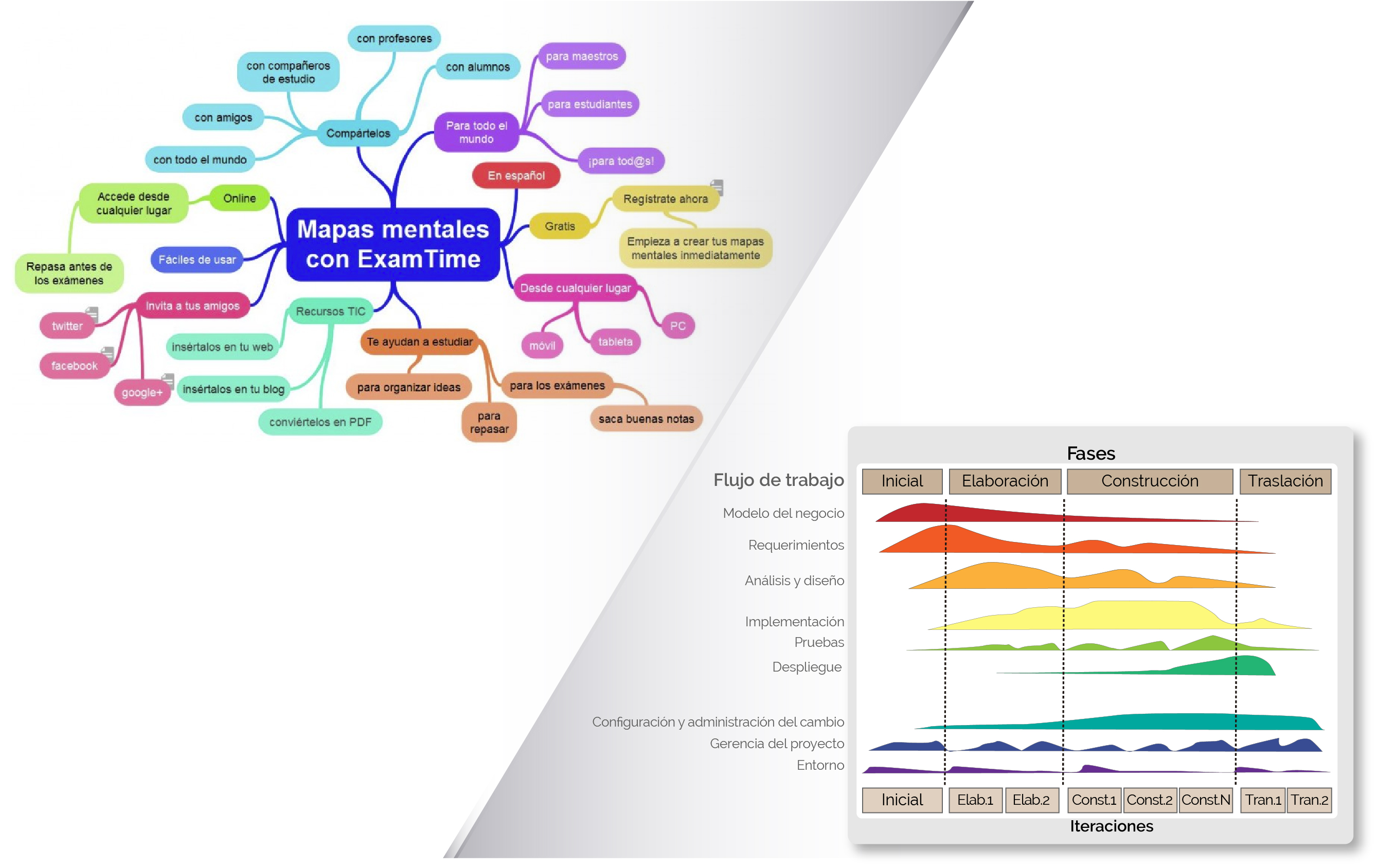 Los mapas mentales permiten identificar, seleccionar y relacionar las partes necesarias para solucionar un problema, mientras que las metodologías son una guía de los pasos necesarios para llegar a la solución de un proyecto. En este contexto, la metodología unificada de desarrollo es una de las más usadas debido a que permite elaborar los requerimientos de forma iterativa a partir de las prioridades.