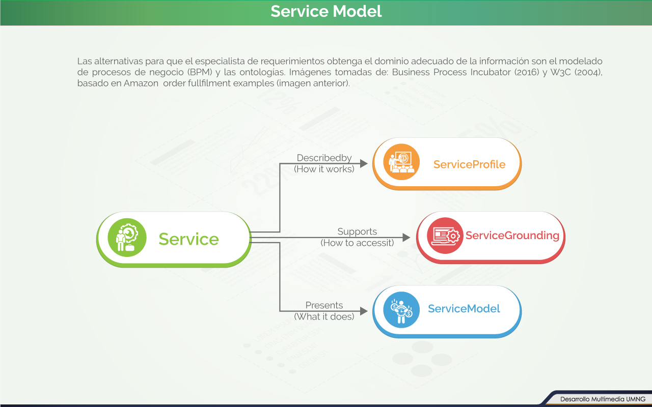 - W3C. (2004). Top level of the service ontology. [Iliustración]. Recuperado de: https://www.w3.org/Submission/OWL-S.
