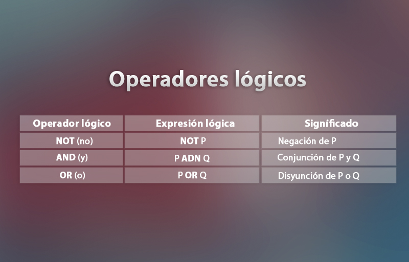 Operadores lógicos: utilizados para representar condiciones lógicas (verdadero o falso).