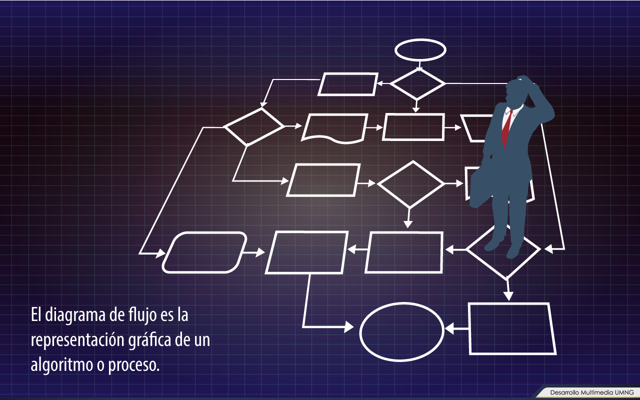 Diagrama de flujo: utiliza diversos símbolos (cajas) para representar cada una de las etapas de la solución de un problema, unidos por flechas que indican la secuencia en que se deben ejecutar (líneas de flujo).