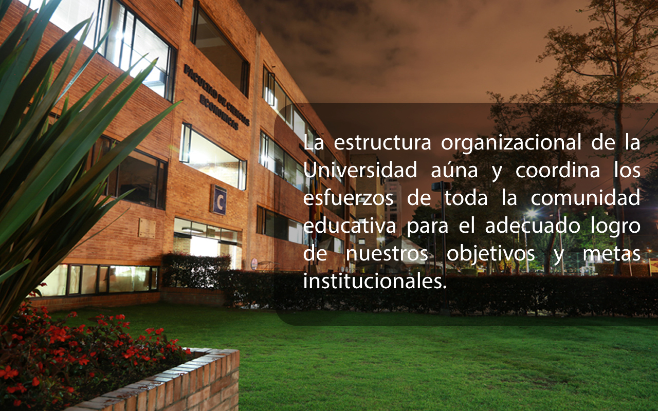 La estructura organizacional es el marco donde se desenvuelve la organización. Agrupa, coordina y controla las tareas para lograr los objetivos. Está conformada por las partes que integran la organización y las relaciones que las vinculan, incluidas las funciones, las actividades y las relaciones de autoridad y dependencia. La Universidad estará conformada por órganos y dependencias de: