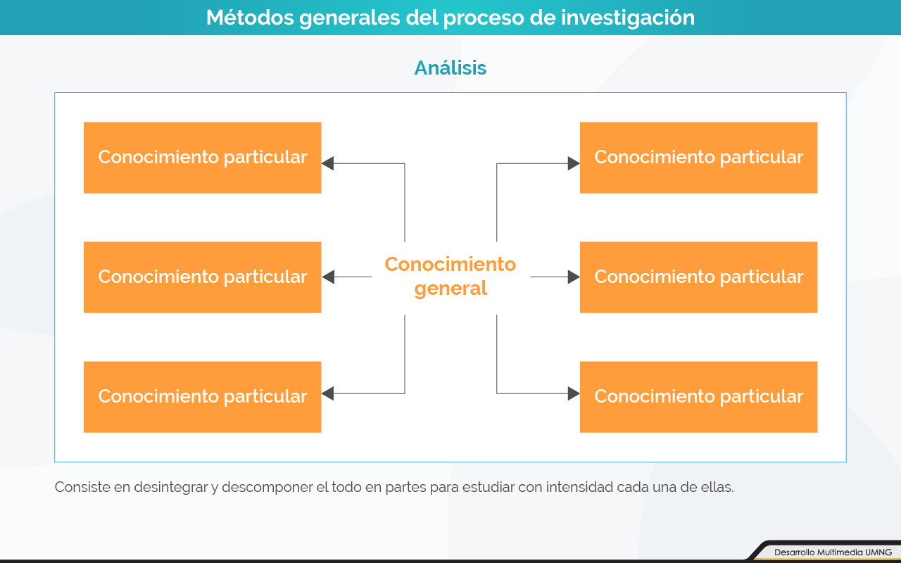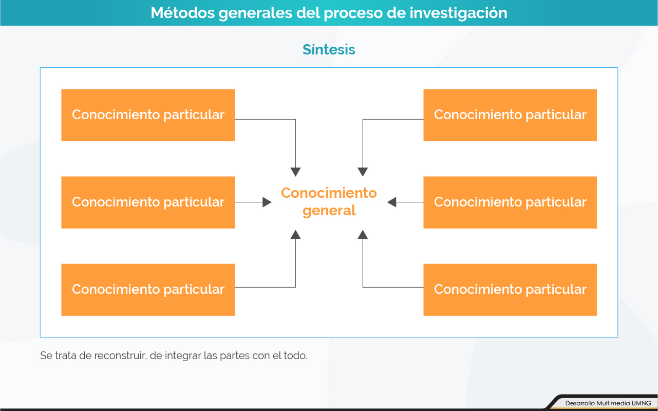 En el proceso de investigación científica se utilizan diversos métodos y técnicas que dependen de la ciencia estudiada y de las características concretas del objeto de estudio. Existen sin embargo métodos que pueden considerarse generales para todas las ramas de la ciencia en tanto que se aplican en los distintos momentos del proceso de investigación con mayor o menor énfasis. Estos métodos son: análisis, síntesis, inducción y deducción.