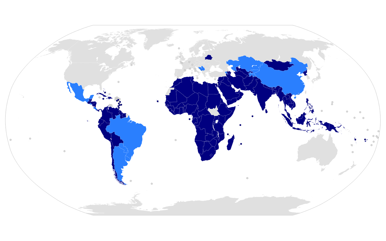Poco después se consolidó en el seno de la UNCTAD (Conferencia de las Naciones Unidas sobre Comercio y Desarrollo) el "Grupo de los 77" (1964), grupo de países en vía de desarrollo que agrupa a los Estados con economías pobres. Con ello se ponía en evidencia la existencia de Estados con economías desiguales, y la necesidad de establecer tratamientos diferenciales en las relaciones entre países con niveles de desarrollo diferentes.