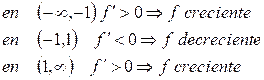 Þ f´´(-1)=-18<0 Þ en x1=-1 se tiene un máximo de f.