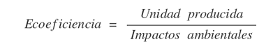 Un indicador de ecoeficiencia es la medida de la calidad medioambiental de un producto, bien o servicio a lo largo del ciclo de vida del mismo. Para su cálculo, se relaciona el valor del producto o servicio con los impactos ambientales agregados que se presentaron durante dicho ciclo, tal como se muestra en la siguiente ecuación: