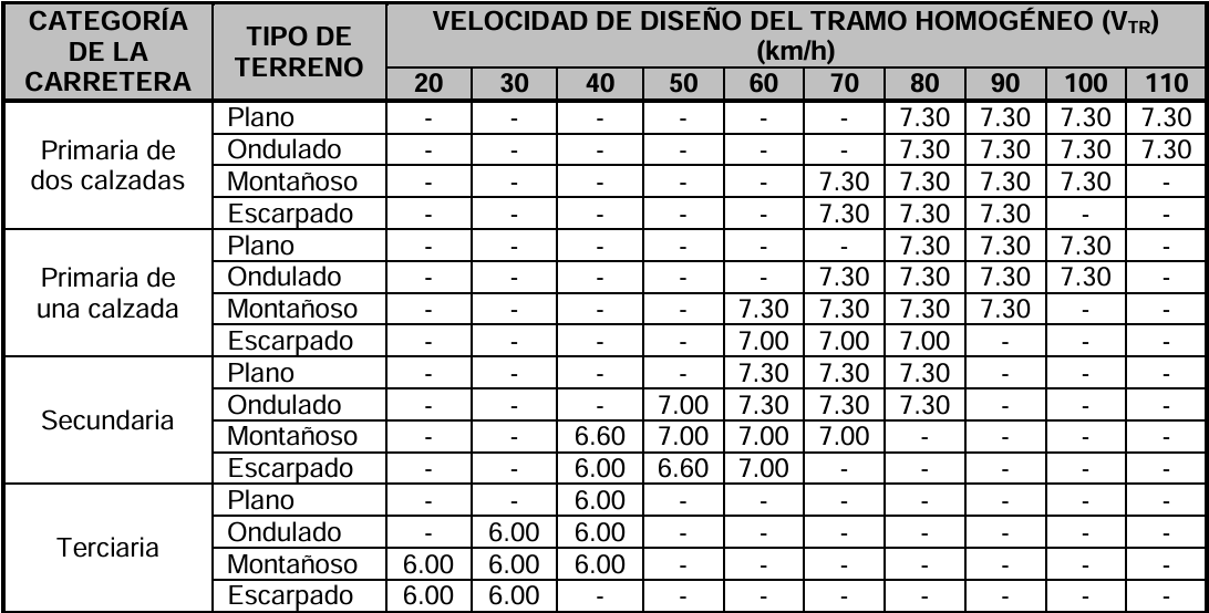 Figura 1. Ancho de calzada para carreteras según clasificación del INVIAS.