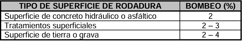 Figura 2. Valores recomendados para el bombeo de la calzada.