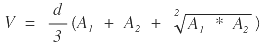 Este volumen se genera cuando al menos una de las dos secciones es mixta, es decir, se presenta cuando las dos secciones son mixtas o entre una mixta y un cero de chaflán, este último caso se aplica exclusivamente al tipo de movimiento (corte o relleno) correspondiente al cero en el chaflán. El volumen está definido como el producto del tercio de la distancia que existe entre las dos secciones por la suma de: las dos áreas más la raíz cuadrada del producto de las mismas.