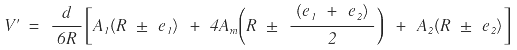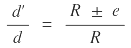 En la misma figura las secciones 3 y 4 son iguales (A3 = A4 = A), pero no son simétricas respecto del eje, esto ocasiona que el centroide de gravedad esté desplazado hacia la parte externa de la curva y tenga un recorrido (d’) diferente a la distancia (d) medida entre las dos secciones por el eje. La distancia a la que se separa el centroide de eje se define como la excentricidad “e” de la sección y será positiva (+e) si se desplaza hacia la parte externa de la curva, o negativa (-e) si se desplaza hacia la parte interna de la curva. Por proporciones se tiene que:
