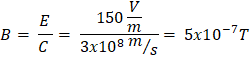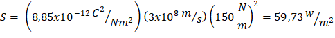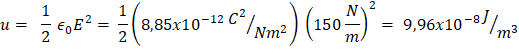 Una onda electromagnética posee un campo eléctrico de 150 V/m. Determine el valor del campo magnético y la variación del flujo de energía S y la de densidad de energía.