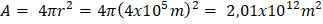 La potencia total media es la misma intensidad, relación al área descrita. Para este caso, el satélite describe un radio de r=400 km o r= 4x105 m. El área será: