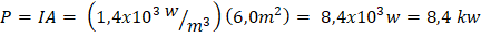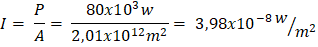 La presión de radiación antes de incidir sobre la superficie de la atmosfera terrestre es 1,4x103 w/m2 . Por lo que la potencia se calcula: