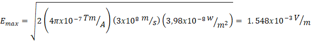 Un satélite geoestacionario emite ondas electromagnéticas con una potencia total media de 80 kw. Calcular las amplitudes para el campo eléctrico y para el campo magnético detectado por un satélite ubicado a 400 km de la antena.