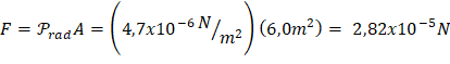 Se tiene 6,0m2 de área de un panel solar ubicado de tal manera que la radicación del sol llega sobre la superficie del parel de forma perpendicular. Calcular la potencia solar media absorbida y la fuerza media asociada con la presión de radiación.