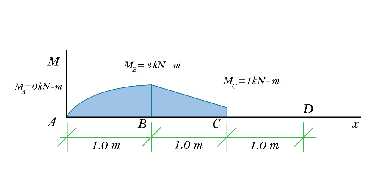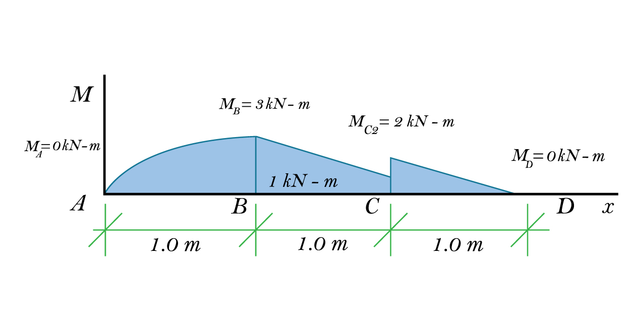 {{M}_{C}}=3+\left( -2 \right)=1~kN-m