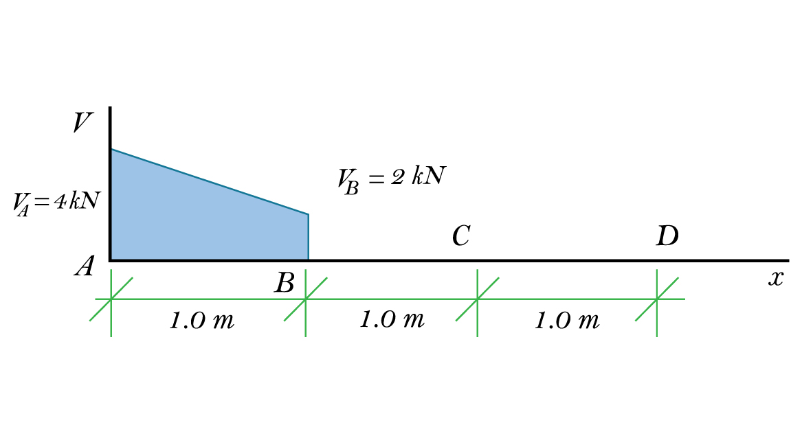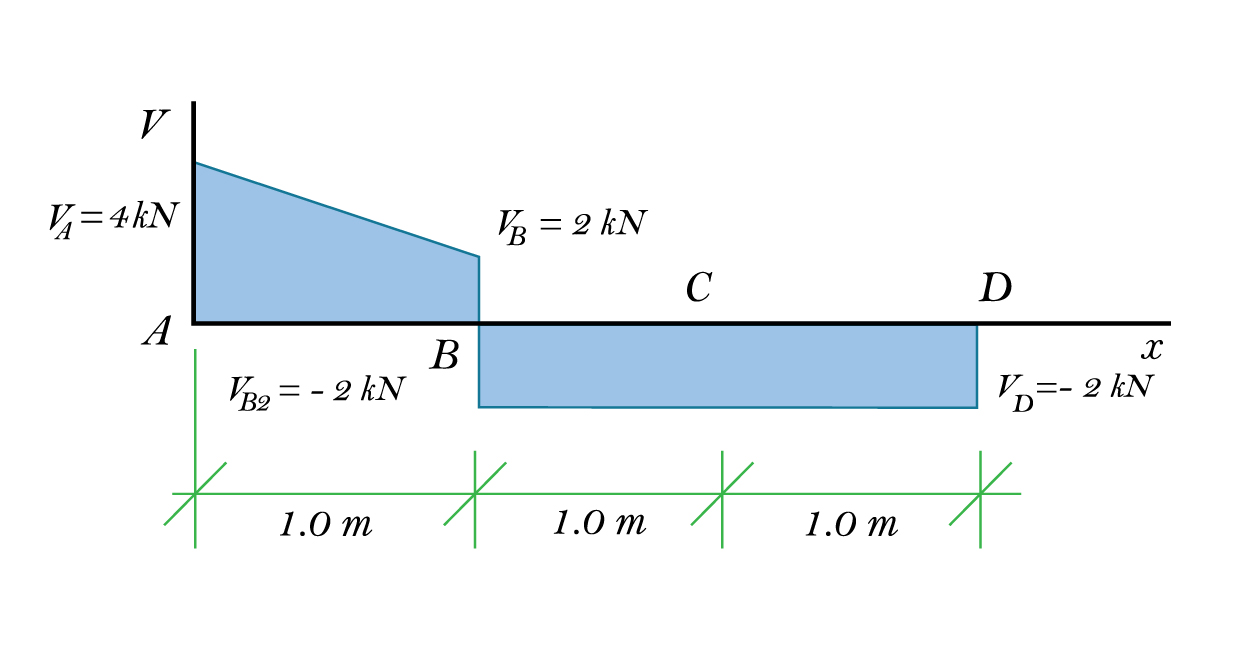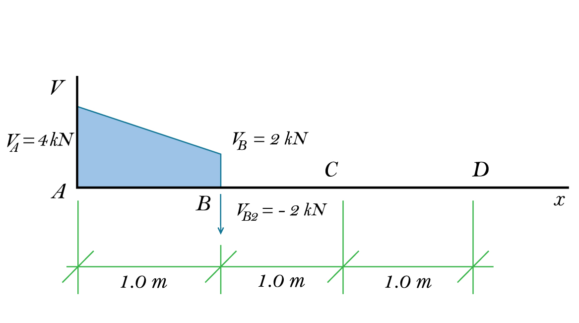 =-2kN;\text{ }{{V}_{B}}={{V}_{A}}+\Delta {{V}_{AB}}=4kN-2kN=2kN