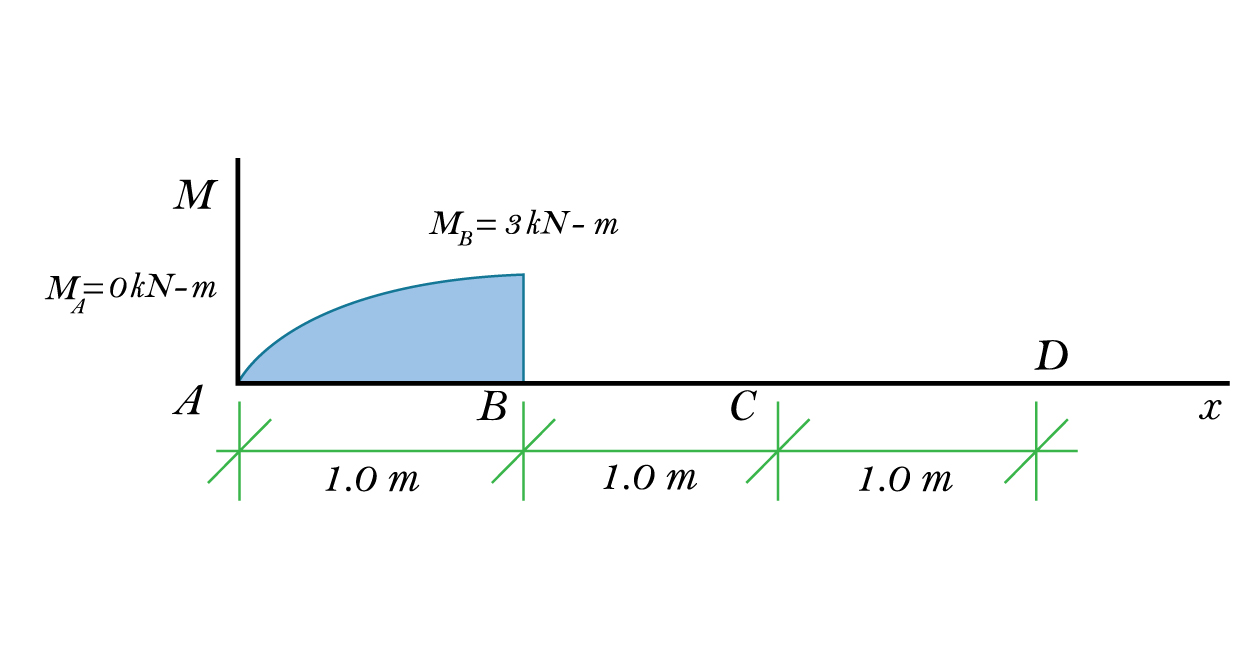 \Delta {{M}_{AB}}={{M}_{B}}-{{M}_{A}}=\left( \acute{A}rea~del~diagrama~de~fuerza~cortante~entre~el~punto~A~y~el~punto~B \right)