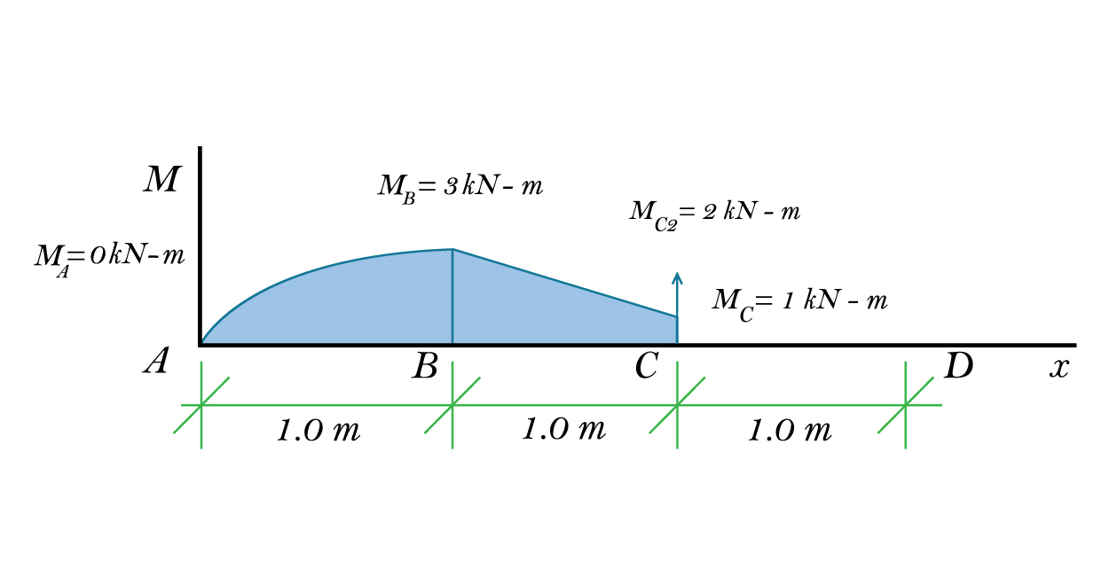 {{M}_{C2}}={{M}_{C}}+Momento=1kN-m~+\left( +1kN-m \right)=2~kN-m