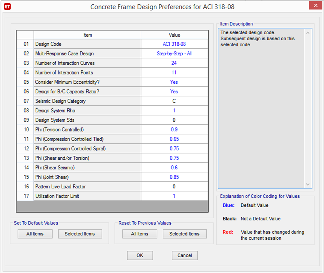 En la figura siguiente se muestra la configuración inicial en el software ETABS donde, se ha seleccionado la categoría sísmica indicada previamente y se ha seleccionado la norma de diseño ACI 318-08.