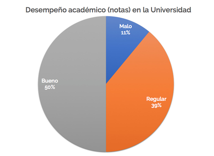 También se puede analizar la relacion para la pregunta sobre el desempeño académico que han tenido en la universidad por géneros.