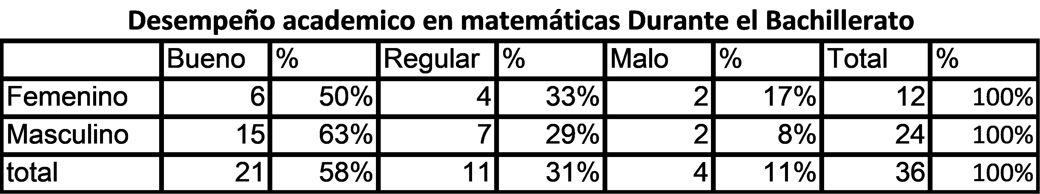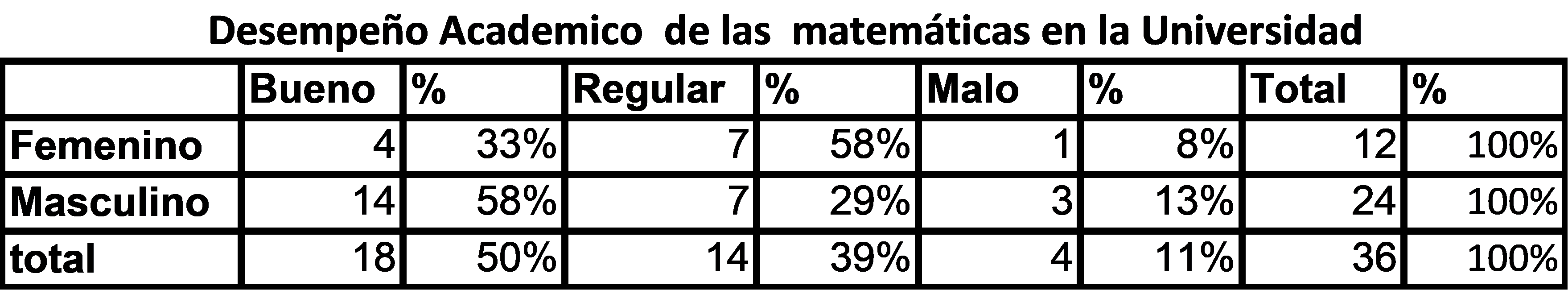También se puede concluir que en cuanto al desempeño de los estudiantes consultados les ha ido mejor a los hombres con un 58% y las mujeres solamente obtienen un 33 % en las asignaturas de matemáticas.