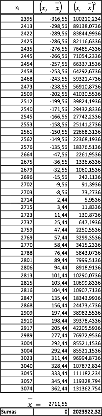 Su interpretación será: el valor representativo de la muestra es de 2711.56 P.S.I. con una dispersión de 41304.54 (P.S.I) al cuadrado.