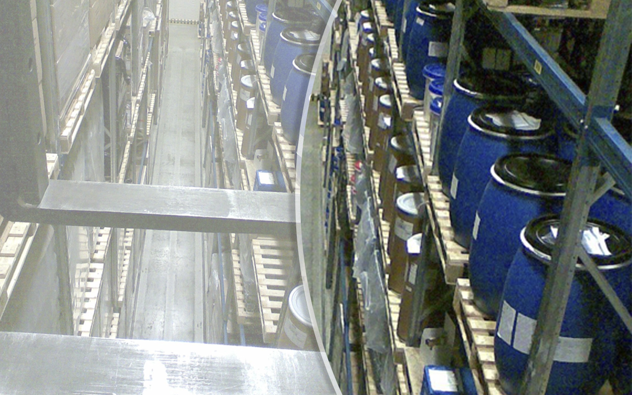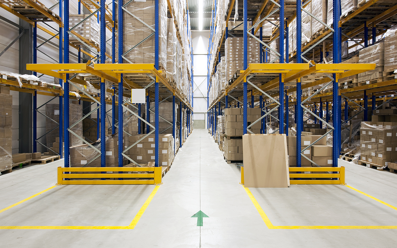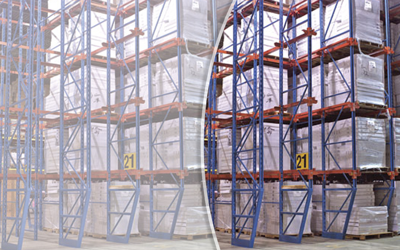 Consisten en pasillos que tienen dos columnas verticales con soporte de carriles para cargas tipo palé. Las carretillas elevadoras pueden ser conducidas dentro del pasillo para colocar los palés en los carriles de soporte. Ambos extremos de los pasillos están abiertos por lo que se puede acceder por ambos lados.
