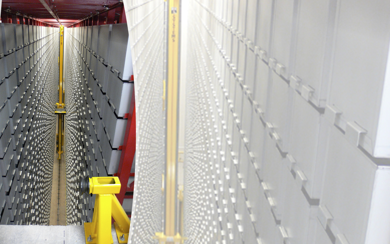 Para almacenaje en grandes alturas, para que las estanterías formen un grupo compacto junto con las cubiertas y los laterales del propio almacén, evitado así obra civil.