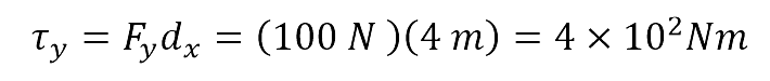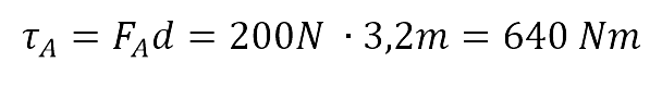 El momento de fuerza τA se puede calcular de dos formas. Una es el producto entre la fuerza y el valor de distancia, así: