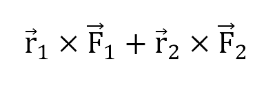 Los vectores r1→ y r2→ representan las posiciones de los puntos donde son aplicadas las fuerzas F1→ y F2→ respectivamente. El momento de torsión producido por este par alrededor del punto arbitrario O es: