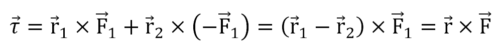 De igual forma, se observa que F1→= -F2→ y r→ = r1→ - r2→ por lo tanto, la anterior expresión se puede escribir como: