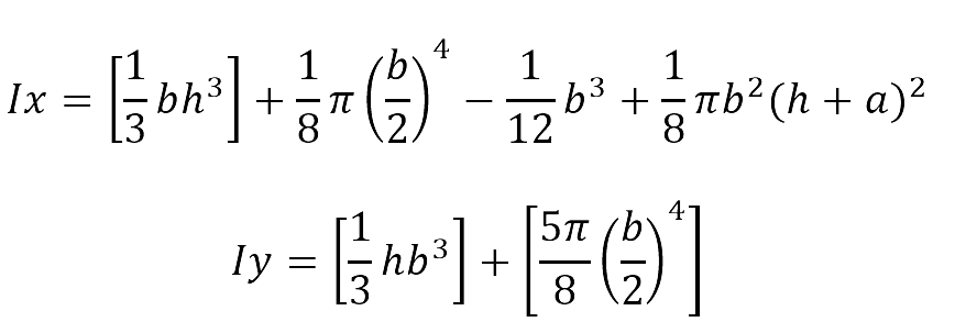 Y por último para hallar los momentos de inercia de la sección compuesta se suman los momentos de cada parte