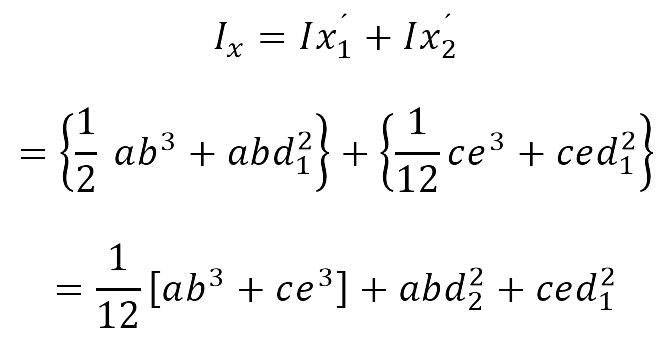 Un área A puede estar constituida de varias partes o secciones de geometría conocida, cada una con un área particular A1, A2..... De acuerdo con esto, es posible encontrar el momento de inercia del área total A respecto a algún eje, encontrando el momento de inercia de cada subárea respecto al mismo eje y luego sumándolos.