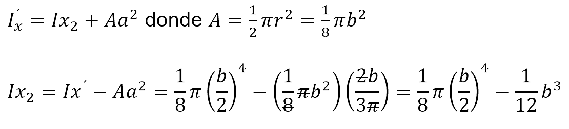 Luego usando Steiner se puede encontrar los momentos respecto al centroide.